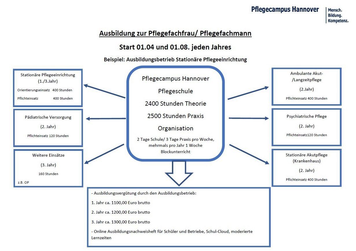 Die Auszubildenden werden zur Pflege von Menschen aller Altersstufen in allen Versorgungsbereichen (Krankenhaus, Pflegeeinrichtung, ambulante Pflege) befähigt. Es bestehen sehr gute Weiterbildungsmöglichkeiten. Der generalistische Berufsabschluss ist auch in anderen Mitgliedsstaaten der EU anerkannt.